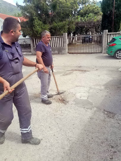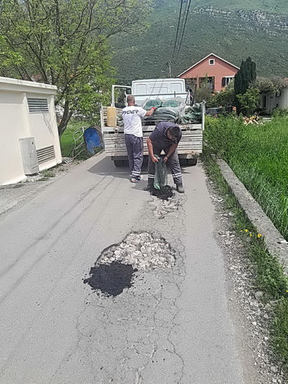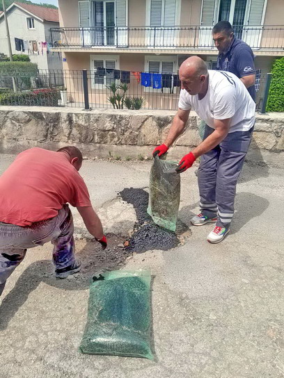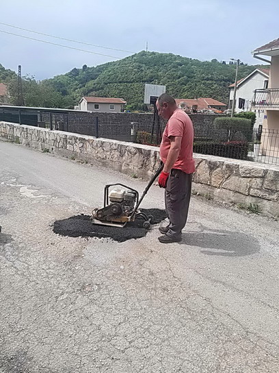 Zaposleni u sektoru za održavanje lokalnih puteva i vodotokova Komunalno Stambenog doo, radili su na pripremi oštećenja u trupu puta, a potom i asfaltiranju oštećenja u Ulici zadrugarska i Ulica pržine u naselju Zelenika.