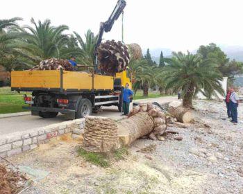 Zaposleni u Sektoru za održavanje zelenila, Komunalno Stambenog doo, uklonili su 6 zaraženih palmi sa Obale Nikole Kovačevića u Igalu