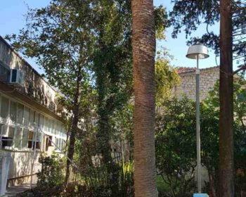 Nakon dendrohirurgije dvije palme, koje su radnici Komunalno Stambenog doo, Sektor za održavanje zelenila, uradili juče ispred I faze Instituta, aktivnosti su nastavljene na uklanjanju drugih dveju palmi
