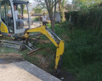 Zaposleni u Sektoru za održavanje lokalnih puteva, Komunalno Stambenog doo, u sklopu redovnog čišćenja vodotokova,
