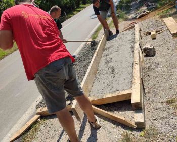 Zaposleni u Sektoru za održavanje lokalnih puteva, Komunalno Stambenog doo, su izlili betonsku ploču dimenzije 3,10×1,50×0,20 pored magitrale u Kumboru.
