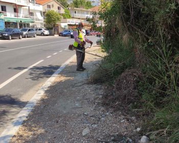 Zaposleni u Sektoru za održavanje lokalnih puteva, Komunalno Stambenog doo, kose površine uz Šetalište Pet Danica
