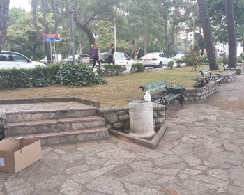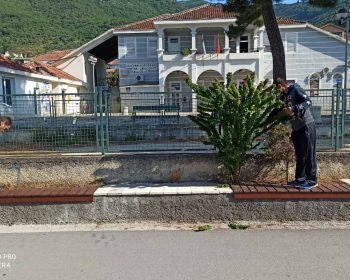 Zaposleni u Sektoru za održavanje zelenila Komunalno Stambenog doo uređuju zelenilo u žardinjerama kod MZ Baošići