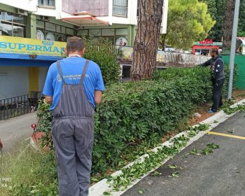 Zaposleni u Sektoru za održavanje zelenila Komunalno Stambenog doo, u okviru redovnih poslova, a saglasno Planu i programu rada orezuju živu ogradu