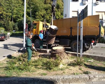 Zaposleni u Sektoru za održavanje zelenih površina, Komunalno Stambenog doo, uklonili su palmu u ulici Stijepa Šarenca, na skveru kod „Čistoće doo“