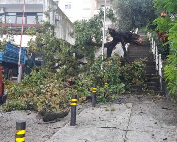 Zaposleni u Sektoru za održavanje zelenih površina, Komunalno Stambenog doo, uklanjaju pali hrast kod Crvenog krsta