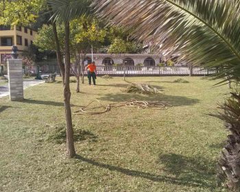 Zaposleni u Sektoru za održavanje zelenih površina, Komunalno Stambenog doo, u okviru redovnog održavanja skverova u Starom gradu,