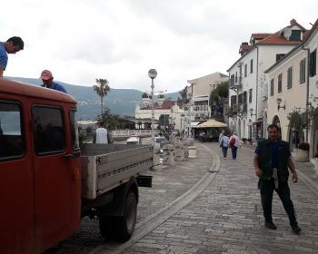 Zaposleni u Sektoru za održavanje zelenih površina, Komunalno Stambenog doo, zasadili su pelargonije u saksijama koje su montirane na stubovima javne rasvjete u Njegoševoj ulici