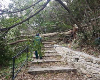 Zaposleni u Sektoru za održavanje zelenih površina, Komunalno Stambenog doo, uklonili su palo stablo sa stepeništa koje vodi od Manastira Savina do Crkve Svetog Save