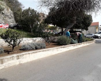 Zaposleni u Sektoru za održavanje zelenih površina, Komunalno Stambenog doo, su u ulici Prve bokeške brigade, na lokalitetu poznatom pod nazivom „Siđi dolje“