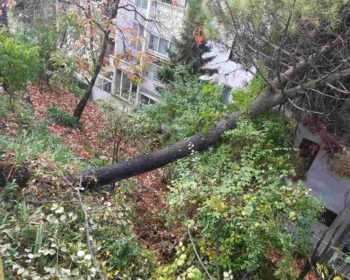 Uslijed nevremena 20.11.2018. pala je pinija visine oko 15 metara i oslonila se na zgradu u ulici Orjenski bataljon 17. Zaposleni u Sektoru za održavanje zelenila