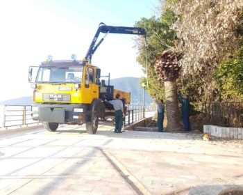 Zaposleni u Sektoru za održavanje zelenila, Komunalno Stambenog doo, uklanjaju su 8 zaraženih palmi sa Šetališta Pet Danica u Herceg-Novom, na dijelu između Citadele i Hotela Plaža