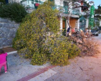 Juče u popodnevnim satima, oko 17 časova, na Šetalištu „Pet Danica“, kod plaže „Žaba“, odnosno picerije „Alo Alo“ polomljeno je veće stablo pitasvora