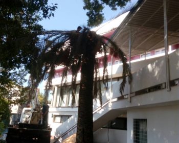 Zaposleni u Sektoru za održavanje zelenih površina, Komunalno Stambenog doo, uklonili su pet palmi iz dvorišta Hotela „Vojvodina“ u ulici 29. decembra u Igalu