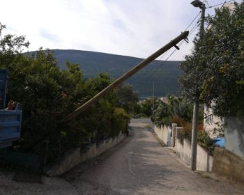 U Đenovićima, iznad magistrale, pala su dva drvena stuba. Zaposleni u Sektoru za održavanje javne rasvjete, Komunalno Stambenog doo, prebacili su liniju javne rasvjete