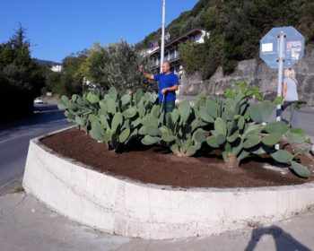 Zaposleni u Sektoru za održavanje zelenih površina, Komunalno Stambenog doo, uređuju skver pored magistrale kod skretanja za Mojdež