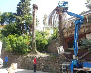 Zaposleni u Sektoru za održavanje zelenih površina, Komunalno Stambenog doo, skidali su osušene listove palmi