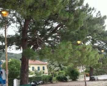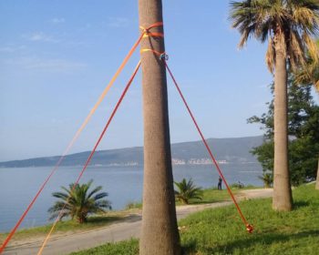 Radnici našeg društva su u Jošicama ponovo fiksirali jednu palmu vezujući je španerima.