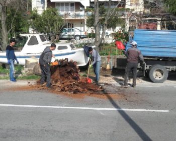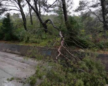 Na donjem putu kroz Kumbor, pored bivše kasarne, odnosno gradilišta Portonovi, pala je jedna veća ramena grana pinije