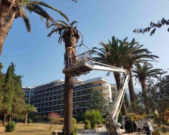 Na zahtjev Instituta Dr. Simo Milošević, a po prethodno izdatom nalogu Fitosanitarne inspekcije, zaposleni u Sektoru za održavanje zelenila, Komunalno Stambenog doo, rade dendrohirurgiju palme kod II faze Instituta