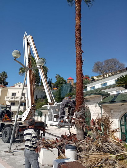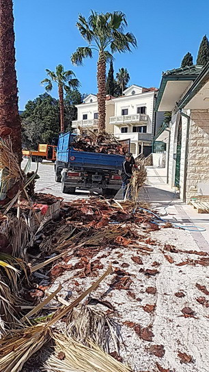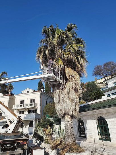 Zaposleni u sektoru uređenja i održavanja javnih zelenih površina Komunalno Stambenog doo, završili su čišćenje palmi Washingtonia fillifera, sa sakupljanjem i odvozom zelenog otpada u zoni Morskog dobra kod “Vojničkih banja”.