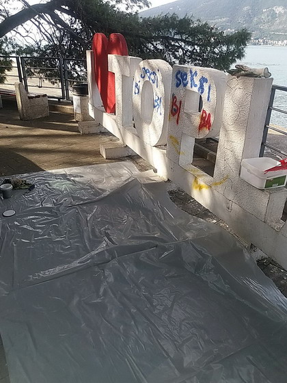 Zaposleni u Sektoru za održavanje lokalnih puteva, Komunalno Stambenog doo, završili su čišćenje i farbanje betonskih slova imena naselja Topla na šetalištu V Danica.