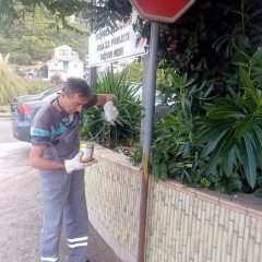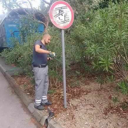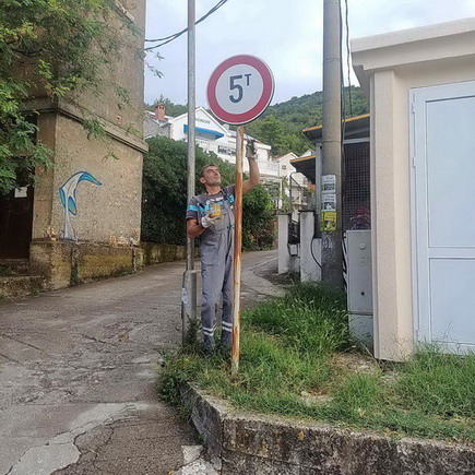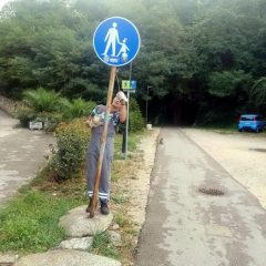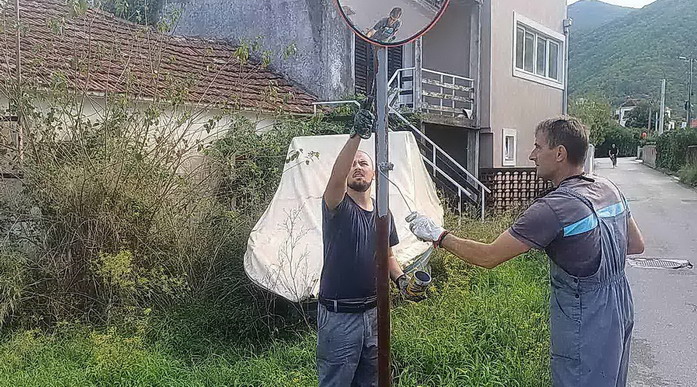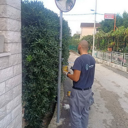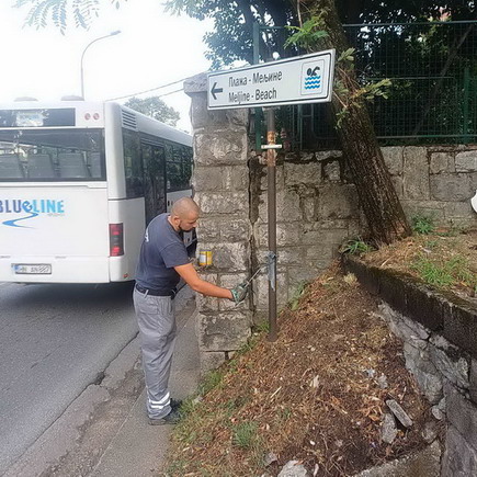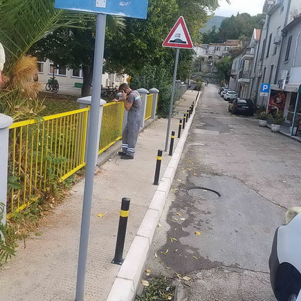 Zaposleni u sektoru za održavanje lokalnih puteva i vodotokova Komunalno Stambenog doo, radili su na farbanje stubova saobraćajnih znakova kroz naselja Meljine i Zelenika.