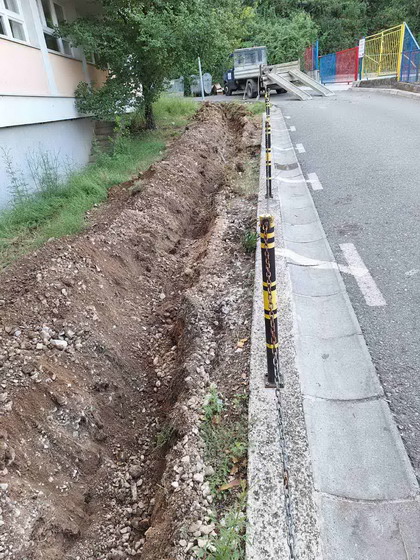 Zaposleni u Sektoru za održavanje lokalnih puteva i vodotokova Komunalno Stambenog doo, završili su posao iskopa kanala za polaganje elektro instalacionog kabla i zatrpavanje istog.