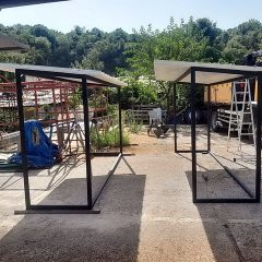 Zaposleni u Sektoru za održavanje lokalnih puteva i vodotokova Komunalno Stambenog doo, radili su na izradi nastrešnica za pjačne tezge u svojoj radionici.