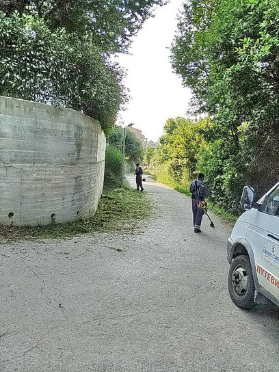 Zaposleni u sektoru za održavanje lokalnih puteva i vodotokova Komunalno Stambenog doo, završavali su košenje putnog pojasa kroz naselje Topla.