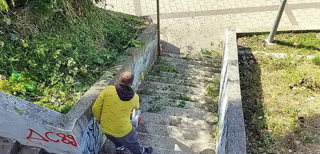 KOŠENJE NA STEPENIŠTU PREMA ŠETALIŠTU KOD TUNELA I KROZ NASELJE TOPLA