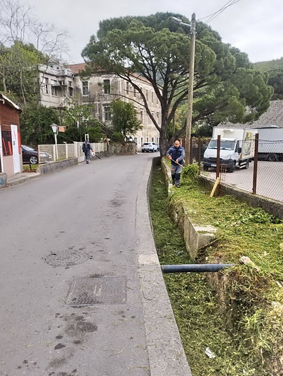 Zaposleni u sektoru za održavanje lokalnih puteva i vodotokova Komunalno Stambenog doo, završavali su posao košenja, grabuljanja i utovara trave duž puteva kroz naselje Zelenika.