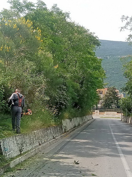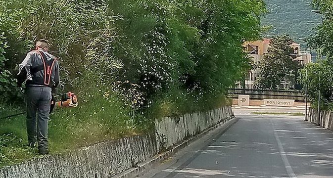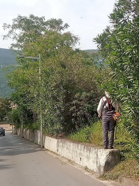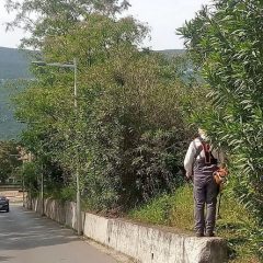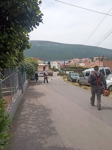 Zaposleni u Sektoru za održavanje lokalnih puteva i vodotokova Komunalno Stambenog doo, radili su na košenju putnog pojasa, uz poprečne ulice, od magistrale do šetališta u Kumboru.
