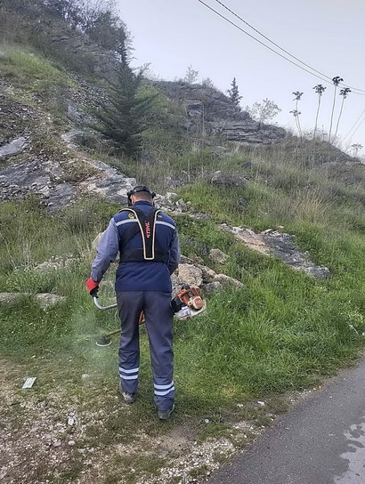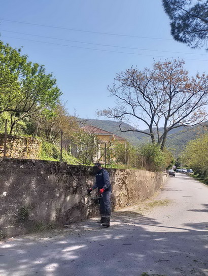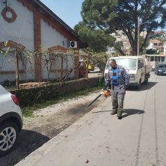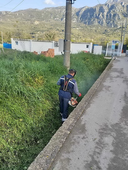 Zaposleni u sektoru za održavanje lokalnih puteva i vodotokova Komunalno Stambenog doo, radili su na košenju, grabuljanju i odvozu zelenog otpada duž putnog pojasa kroz naselje Zelenika.