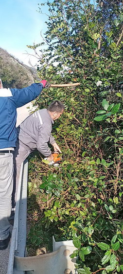 Zaposleni u sektoru za održavanje lokalnih puteva i vodotokova Komunalno Stambenog doo, radili su duž Njivičkog puta na krčenju putnog pojasa.