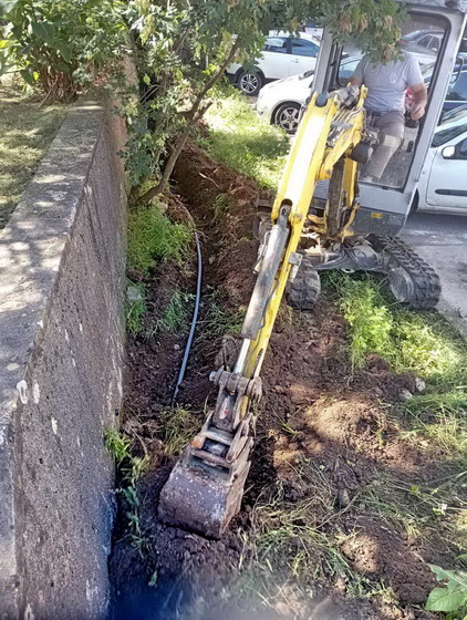 Zaposleni u sektoru za održavanje lokalnih puteva i vodotokova Komunalno Stambenog doo, završili su mašinski iskop kanala za polaganje elektro-instalacionog kabla u naselju Topla i zatrpavanje istog nakon završenog posla.