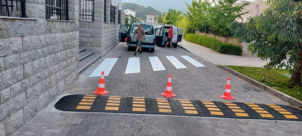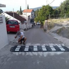 MONTAŽA LEŽEĆE PREPREKE I ISCRTAVANJE NOVOG PJEŠAČKOG PRELAZA