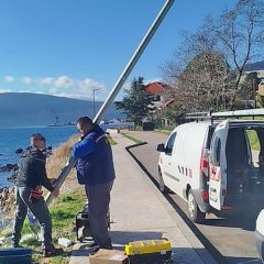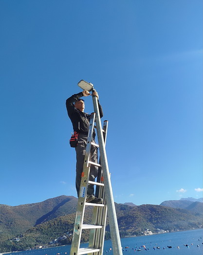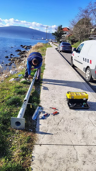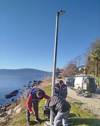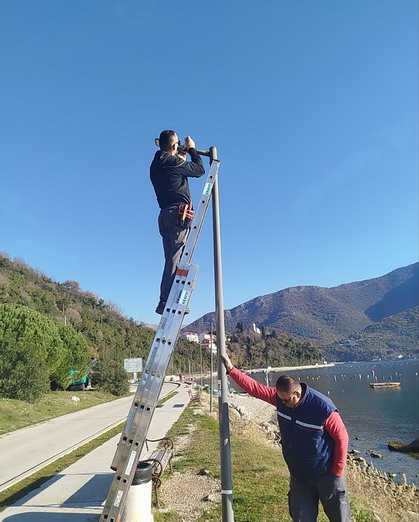 Zaposleni u sektoru za upravljanje javnom rasvjetom Komunalno Stambenog doo, završili su (11.12.2025) na šetalištu prema hotelu “Park” u Bijeloj, montažu dva stuba visine H=4m sa led lampama jačine 45w po zahtjevu firme “JP. Morsko dobro” kao i zamjenu polomljene lampe novom.