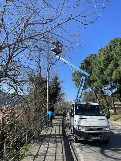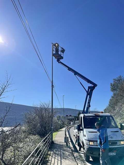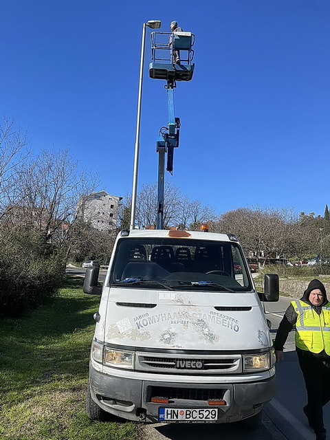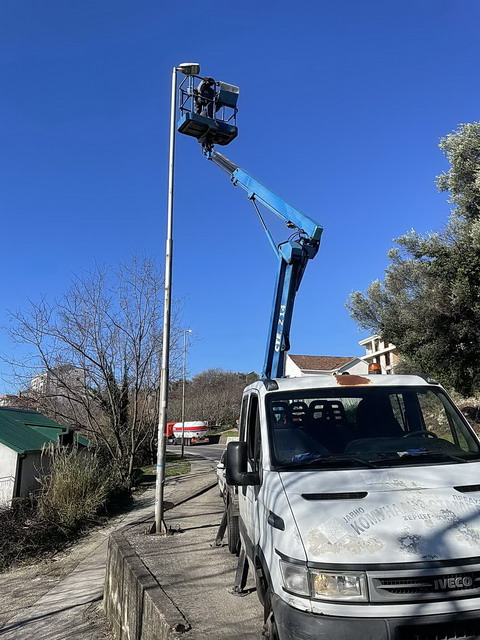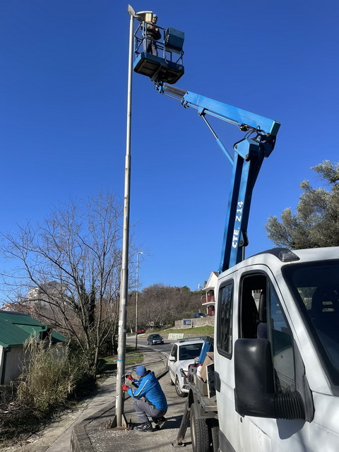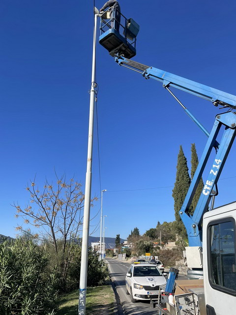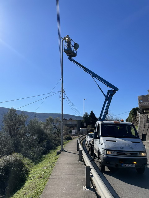 Zaposleni u Sektoru za upravljanje javnom rasvjetom Komunalno Stambenog doo, završili su na magistralnom potezu od Kumbora (“Torte”) do Baošića, uz asistenciju Komunalne policije, montažu i zamjenu oko 20 led lampi.