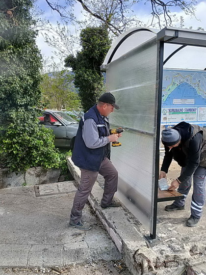 Zaposleni u sektoru za održavanje lokalnih puteva i vodotokova Komunalno Stambenog doo, završili su montažu autobuskih kućica na autobuskim stajalištima na Vrbanju i u Kamenarima. Na Kamenarima je uklonjen polomljenog stuba javne rasvjete.
