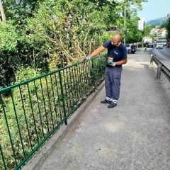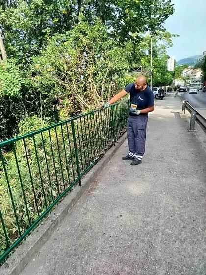 Zaposleni u sektoru za održavanje lokalnih puteva i vodotokova Komunalno Stambenog doo, nastavili su sa farbanjem zaštitne ograde u ulici dr. Jovana Bijelića (magistralni pojas).