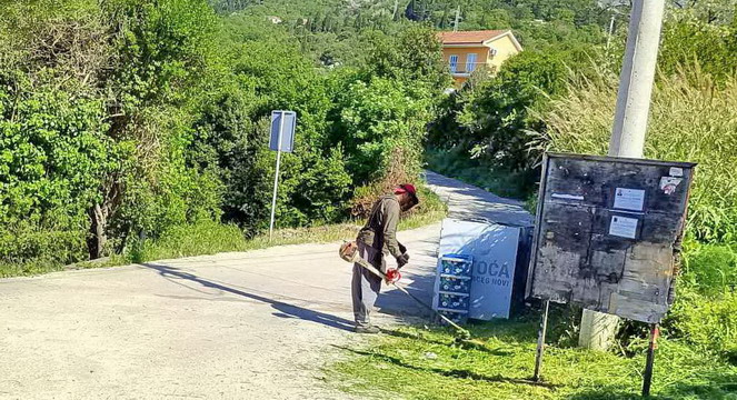 Zaposleni u sektoru za održavanje lokalnih puteva i vodotokova Komunalno Stambenog doo,nastavili su sa košenjem putnog pojasa kroz naselje Topla.