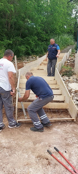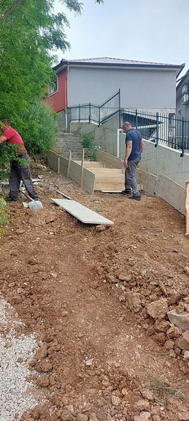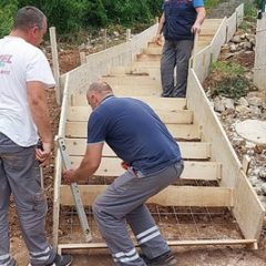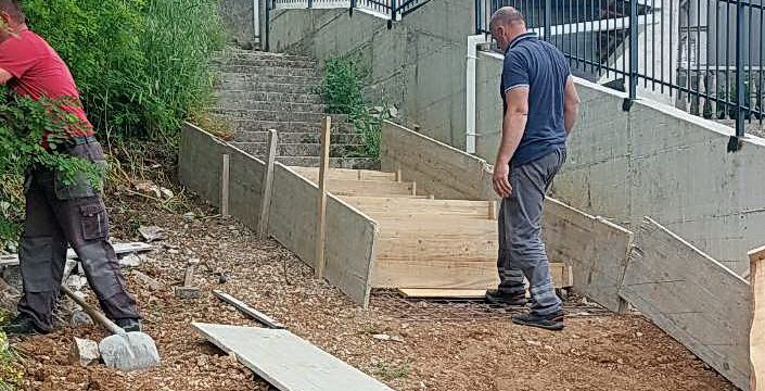 Zaposleni u Sektoru za održavanje lokalnih puteva i vodotokova Komunalno Stambenog doo, nastavili su na radovima – betoniranja pješačke staze dužine cca L=20m, u širini već postojećeg stepeništa u ulici Prljaga u Zelenici.