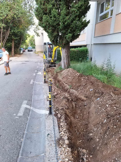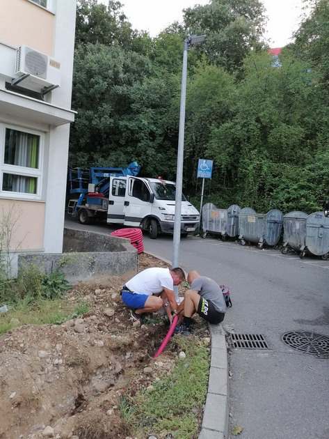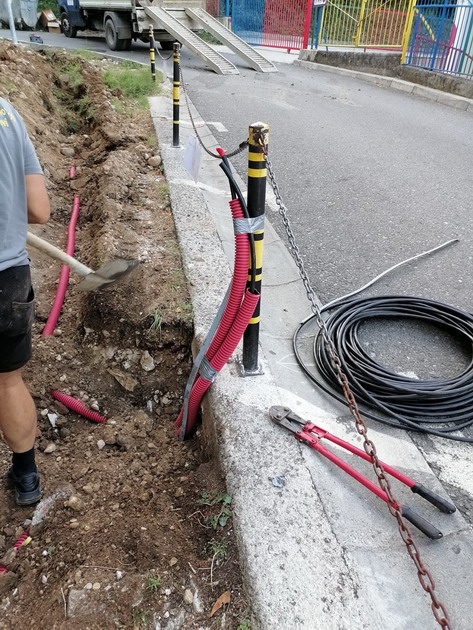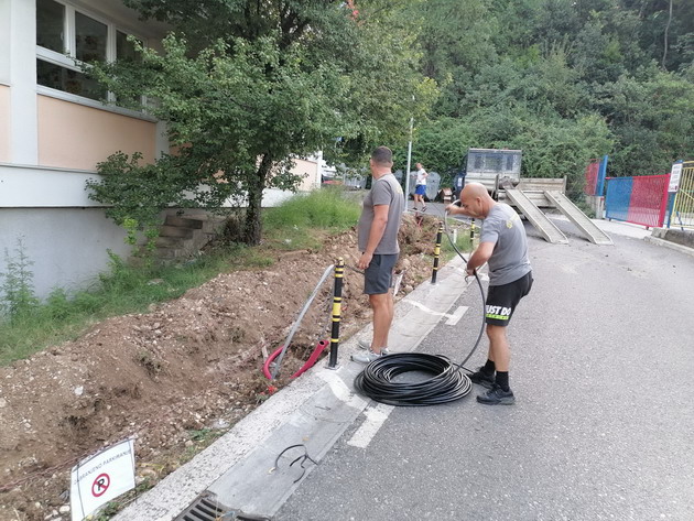 Zaposleni u Sektoru za upravljanje javnom rasvjetom Komunalno Stambenog doo, završili su polaganje kabla sa bužirom u iskopan kanal za nastavak rasvjete oko škole “Dašo Pavičić”, za četri stuba javne rasvjete. Ukupno je položeno oko 100m kabla i trake za uzemljenje.