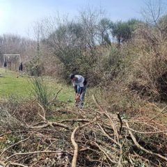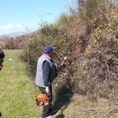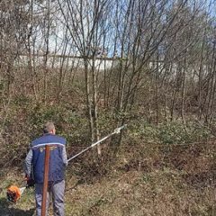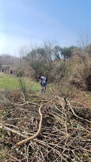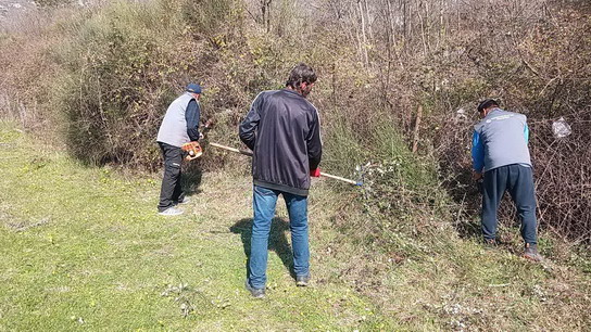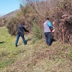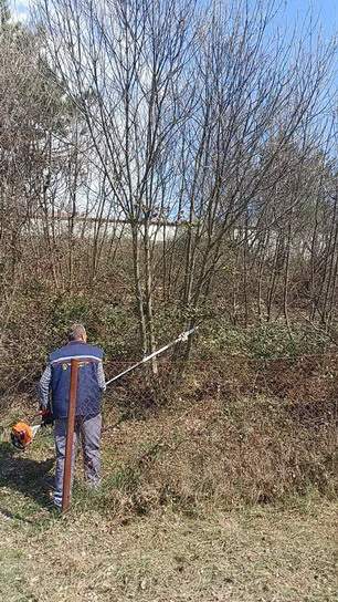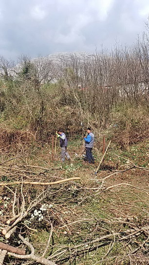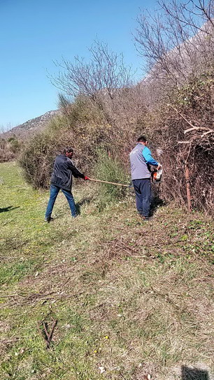 Zaposleni u sektoru uređenja i održavanja javnih zelenih površina Komunalno Stambenog doo, nastavili su sa krčenjem zelenih površina oko igrališta u naselju Kameno.