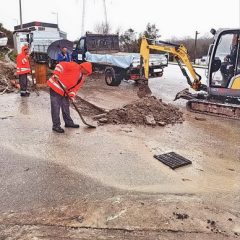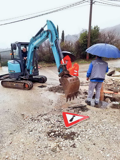 Zaposleni u sektoru za održavanje lokalnih puteva i vodotokova Komunalno Stambenog doo, nastavili su radove u naselju Podi, armiranje i betoniranje ploče nad položenom cijevi za atmosfersku kanalizaciju.