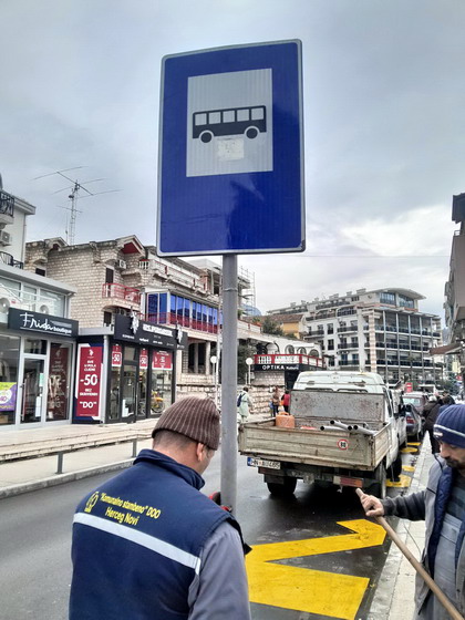 Zaposleni u sektoru za održavanje lokalnih puteva i vodotokova Komunalno Stambenog doo, nastavljaju sa postavljanjem znakova vertikalne signalizacije u Igalo.