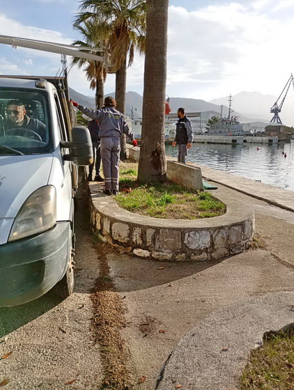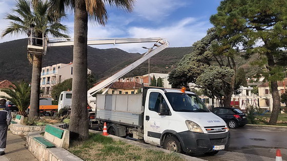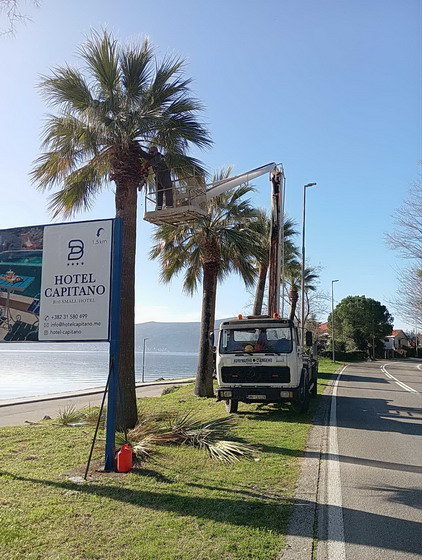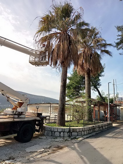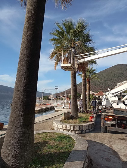 Zaposleni u sektoru uređenja i održavanja javnih zelenih površina Komunalno Stambenog doo, završili su orezivanje palmi duž rivjere. Poslovi su završeni na lokacijama u Baošićima kod Ribarske zadruge, u Bijeloj preko puta parka i u Jošicama.