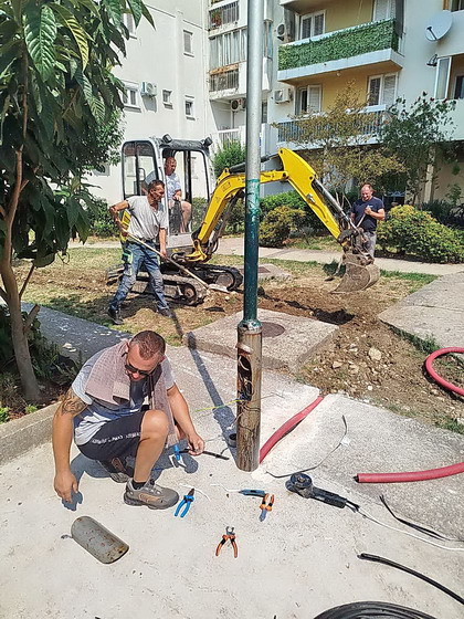 Zaposleni u sektoru za upravljanje javnom rasvjetom Komunalno Stambenog doo, završili su postavljanje i spajanje oko 40 m PPOO 5X6 mm Cu kabla sa pripremom pozicije za stopu novog stuba javne rasvjete u ulici Mića Vavića.
