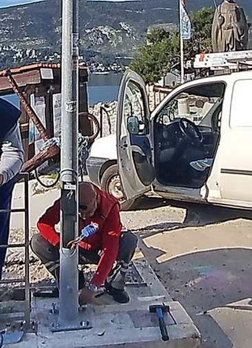 Zaposleni u sektoru za upravljanje javnom rasvjetom Komunalno Stambenog doo, završili su na šetalištu V danica, u blizini tvrđave Forta Mare ponovnu montažu stuba rasvjete nakon betoniranja nove stope stuba.